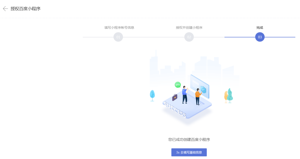 百度官方审核通过后,即可完成注册流程,成功创建百度小程序。接下来您可以对百度小程序的基本信息进行完善。