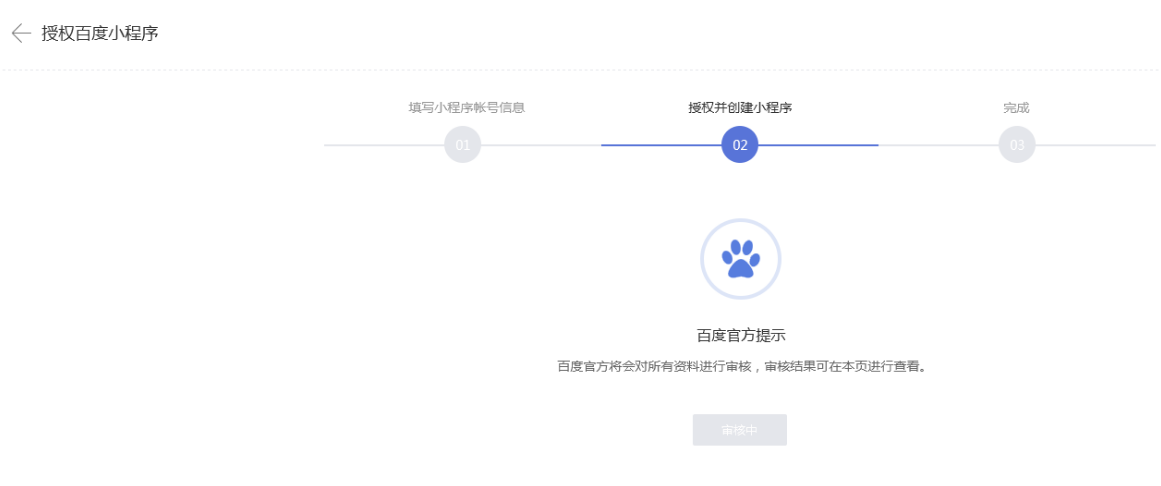 成功授权后,等待百度官方进行审核,审核结果可在当前注册页面中进行查看。
