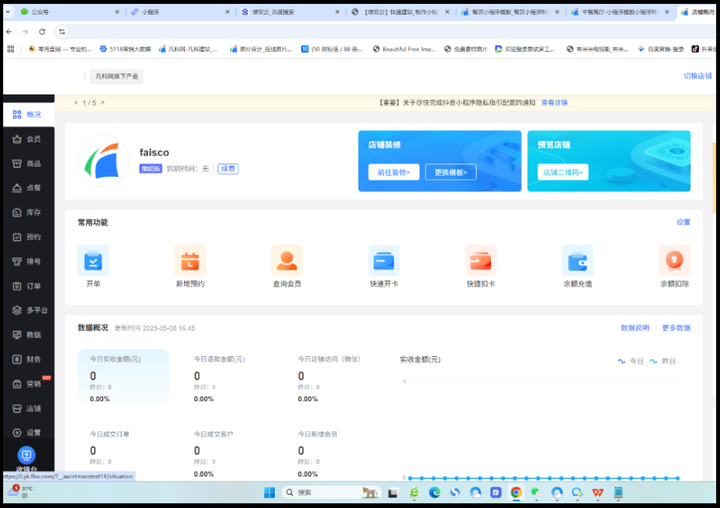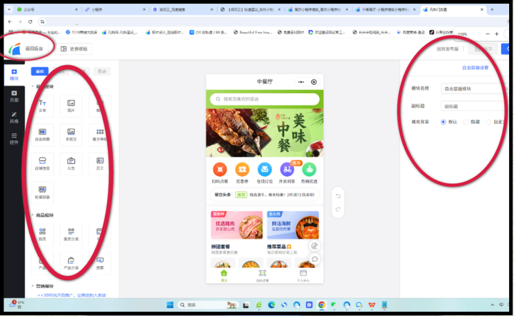 ① 左侧拖拽添加功能组件(菜单/预约表单/会员等)