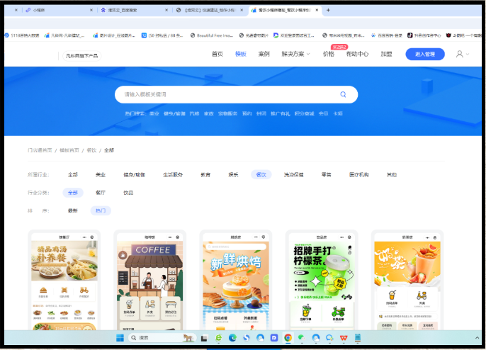按行业筛选模板(如选餐饮→扫码点餐模板),点进去可预览全貌,手机扫码可实测效果