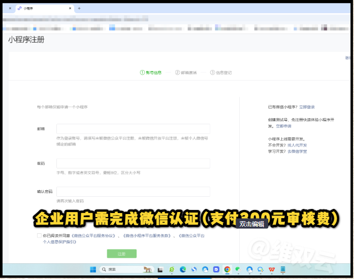 企业用户需完成微信认证(支付300元审核费)