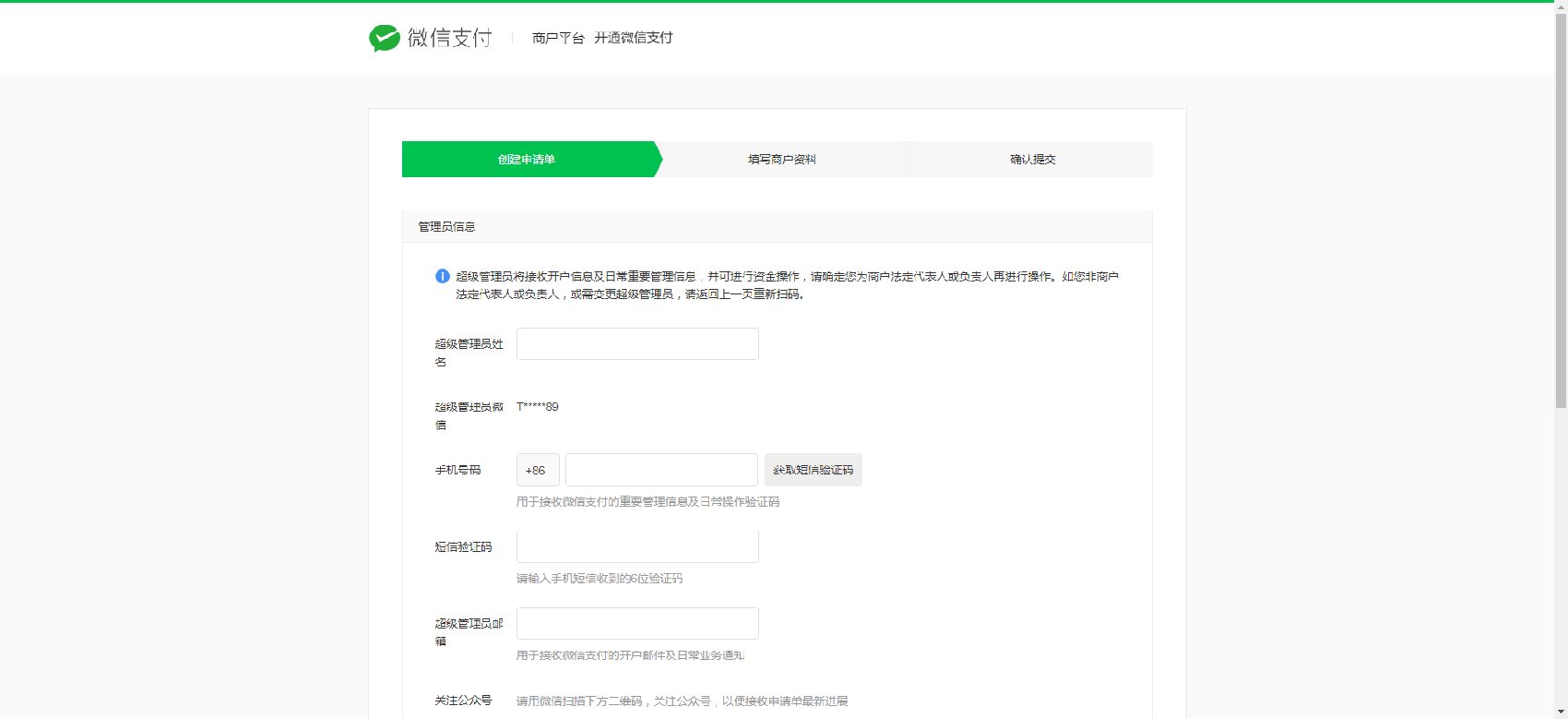 1. 申请【开通】微信支付并完成信息填写