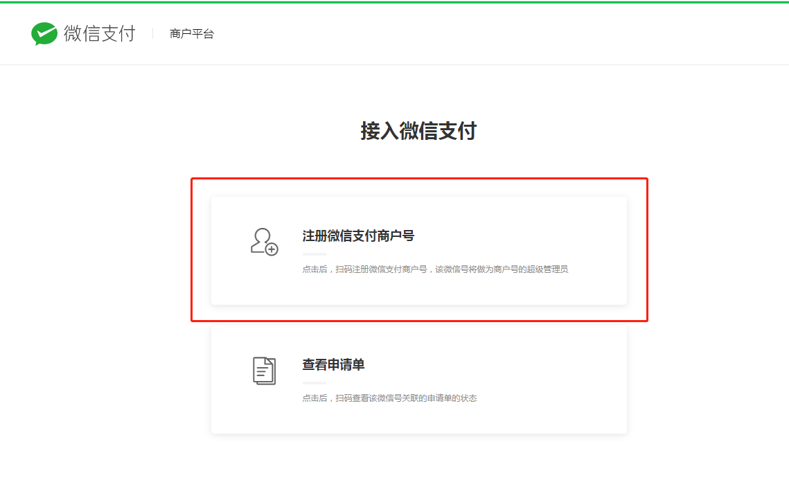 2.1 点击【注册微信支付商户号】